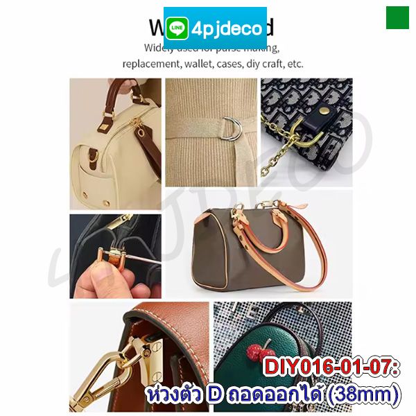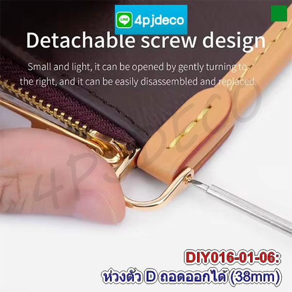 ห่วงตัว D แบบถอดออกได้ เพียงใช้ไขควง สำหรับสายกระเป๋า เป็นอะไหล่สำหรับทำกระเป๋าเดินทาง กระเป๋าเป้สะพาย หรืออื่นๆ ตามต้องการ ความยาว 38mm (เหมาะสำหรับสายกระเป๋าขนาดกว้าง 38mm) รุ่นพิเศษ สามารถถอดแกนสายกระเป๋าออกได้ (แกนบริเวณคอหมา) เพื่อเปลี่ยนสายกระเป๋าเป็นเส้นใหม่ตามความต้องการ